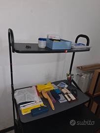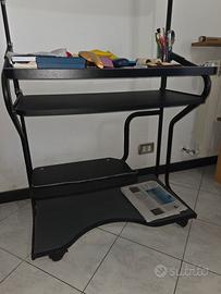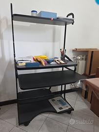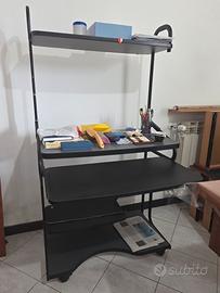 Come da foto, mobile per PC, stampante e altro. Equipaggiato con ripiano inferiore estraibile per uso come scrivania, ruotine per il trasporto.