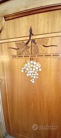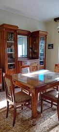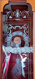 Mobile da sala originale stile Liberty primi '900 con intarsi in madreperla e vetri decorati molati, 218x42xh193 cm, restaurato alcuni anni fa, in perfette condizioni a parte un vetro laterale con piccola rottura