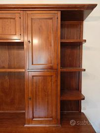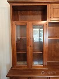 Bellissimo mobile per soggiorno in noce americana. Composto da vetrina, libreria, cassettiera, antine. Misure: H 228cm, larghezza 260cm, profondità massima 53cm. Tenuto perfettamente