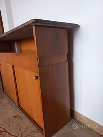 MOBILE IN LEGNO VINTAGE ANNI 80 PER SOGGIORNO-PRANZO 135x40 h. 86, PIANO IN GRANITO, ANTE SCORREVOLI . RITIRO SUL POSTO A CARICO DELL'ACQUIRENTE