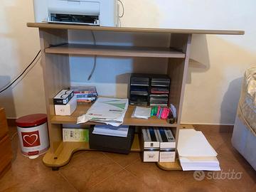 vendo mobile porta stampante/scrivania in legno color noce chiaro con ruote e con un comodo ripiano scorrevole misure: lung. 104, prof. 53, alt. 81