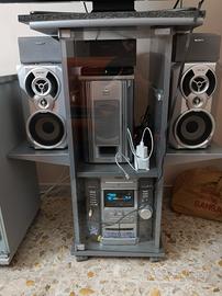 Mobiletto per hi-fi con vano centrale chiuso da uno sportellino di vetro trasparente ed intatto dove è situato anche un cassettino porta CD. Mobiletto con rotelle perfettamente funzionanti. Presenti due mensole esterne dove appoggiare le casse. Vendo per sostituzione con mobile più grande.