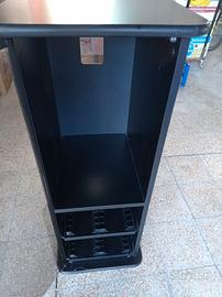 Mobile per stereo nero. Il mobile è in buono stato ma sotto davanti ha una ammaccature come da foto. La parte bassa è un porta CD la parte alta e per lo stereo. Il giradischi va appoggiato sopra. Misure altezza 114 cm lati 39x44 misure interne altezza vano porta CD 39 cm. I due vani porta CD sono estraibili e si possono togliere con facilità e magari mettere dei dischi in vinile al loro posto. Misure vanno porta stereo altezza 53 larghezza 30 cm. Il giradischi se c'è va messo sopra. Per altre informazioni contattatemi pure.
