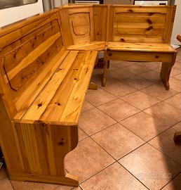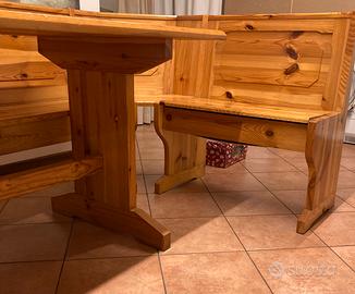 Vendo in blocco come da foto arredo per taverna in Pino in ottimo stato. Credenza H 190 L 114 P 50 . Tavolo 140 x 78 H 79 . Giro panca 192 x 132 seduta 47 altezza 90