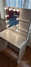 Mobile per trucco completo di mensole, specchio, cassetto e luci.