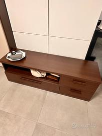 Vendo mobile porta TV color mogano con ripieano per decoder e tre cassetti. Misure 135x45 profondità 39. In aggiunta pensile sempre in mogano con anta in vetro, misure 120x35 profondità 35. Costo 50, solo ritiro in loco.