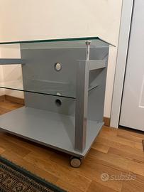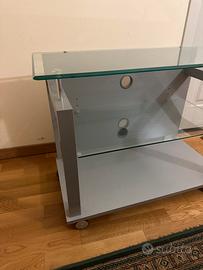 Mobile per tv con vetro, due ripiani. Con ruote.