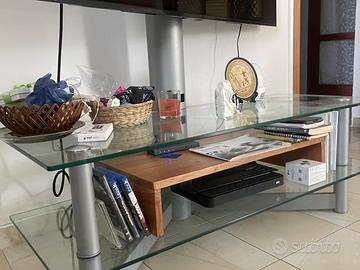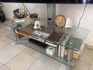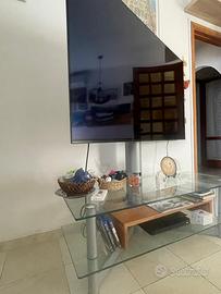 Mobile per tv in cristallo con due ripiani e nascondicavi. Supporta tv fino a 85”