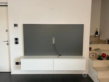 Mobile per tv H130cm larghezza 180cm profondita 35cm retroilluninato led. Materrale legno. Colore bianco grigio. Predisposizione per appendere la tv. Apertura ante pneumatica-push.