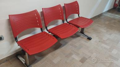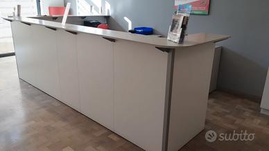 Mobile per ufficio completa di cassettiere, sedie girevoli panca a tre posti e madia con ante e cassetti