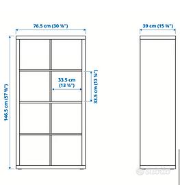 Vendo mobile per ufficio/casa di Ikea, modello Kallax, colore bianco, 8 scomparti, ben conservato con annessi 3 ante e 4 cassetti. In foto si possono vedere le misure e i prezzi del nuovo, per un totale di 155e.