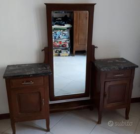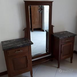Causa trasloco, vendo pettineuse originale degli anni '50 in legno di ciliegio, con specchio e ripiani in marmo. Misure: lunghezza 135 cm, profondità 30 cm, altezza 135 cm. (fino allo specchio).