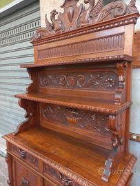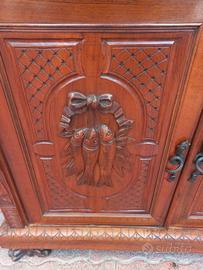 mobile piattiera completamente restaurato tutto legno massello intarsi fatti a mano pezzo vintage, altezza 230 larghezza 120 profondità 47