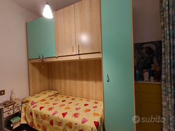 “Vendo mobile ponte singolo L 250x H 250 x P 58 cm, altezza sotto ponte 150 cm, 4 ante sopra letto + 1 colonna laterale con appendiabiti Colore rovere chiaro e azzurro, acquistato nel 2018, usato ma in ottime condizioni Smontaggio e trasporto a carico dell’acquirente, zona Ardea (RM) Lido dei pini .