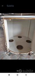 mobile porta bottiglie in stile veneziano degli anni 70. la sua lavorazione ricercata consta di una tramatura a reticolo tipo ragnatela. la parte sopra è leggermente danneggiata. altezza cm 80 diametro cm 60. condizioni più che buone. ritiro in loco. trasporto a carico acquirente