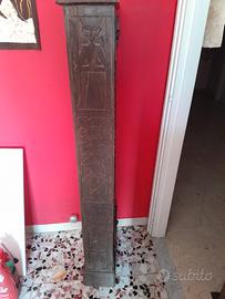 Splendido mobile porta-CD a colonna realizzato interamente in legno massello scuro, finemente lavorato a mano. Un pezzo d'arredamento unico che unisce utilità e arte. Design: Caratterizzato da intagli artigianali su tutti i lati e sul top, con figure stilizzate di ispirazione tribale/etnica. Capacità: Dispone di 68 slot per organizzare la tua collezione di CD o piccoli DVD/libri e di 4 piccoli cassetti (due in alto e due in basso) con pomelli in legno, ideali per riporre piccoli oggetti o accessori. Dimensioni: base 40x20 cm circa altezza 150 cm circa Condizioni: Molto buone, come da foto. La patina del legno è originale e i segni del tempo ne esaltano il carattere artigianale. Struttura solida e stabile. Perfetto per un salotto dal gusto boho-chic o per dare un tocco esotico al tuo studio.