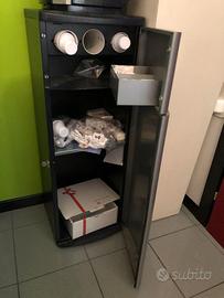 Spazio Extra: 3 porta bicchieri di plastica con molle, 3 ripiani e due porte in metallo.