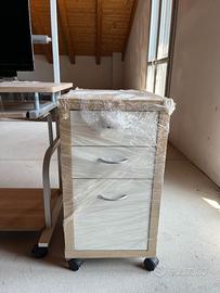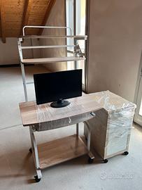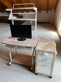 Vendo, per inutilizzo, set composto da mobile porta PC e stampante a 4 ripiani con, in più, un ripiano scorrevole per tastiera e mouse, più cassettiera coordinata, come da foto.