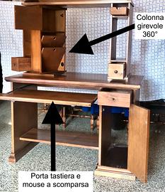 Mobile in puro legno in stile arte povera porta pc e accessori quali stampanti, tastiere, modem, etcc. Diversi cassetti, colonna girevole. Le misure sono messe in foto. Il ritiro è a carico dell'acquirente, non spedisco.