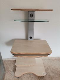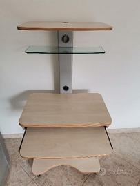 mobile per pc, stampante, tastiera, tv in legno e cristallo con struttura passacavi mis cm. 77x60x153 altezza.