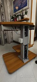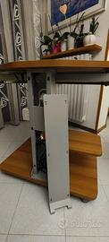 Nella struttura molto compatta e razionale trovano posto il case e la stampante sui ripiani inferiori, lo schermo e la tastiera + mouse su quelli superiori, uno dei quali scorrevole.