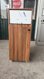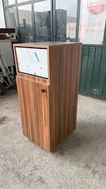 Vendesi elegante mobile porta rifiuti con finitura in legno venato, ideale per uffici, bar, studi professionali o ambienti domestici moderni. Il mobile è robusto, esteticamente curato e pronto all'uso. Dispone di un vano superiore basculante in acciaio (ancora con pellicola protettiva Nitto) e un pratico bidone interno incluso. Caratteristiche principali: • Design: Linee pulite con pomello nero minimalista. • Funzionalità: Sportello frontale per una facile estrazione del sacco. • Dettagli: Piedini rialzati che facilitano la pulizia del pavimento. • Condizioni: Ottime, pari al nuovo. Dimensioni: • Altezza : 110 cm • Larghezza frontale : 44 cm • Profondità laterale : 52 cm