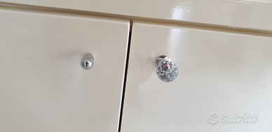 Mobile nato come porta sciarpe o porta scarpe da negozio. Ideale anche per cabina armadio. Usato pochissimo. Legno massiccio quasi nuovo. Vano sottostante con doppia anta molto spazioso. Maniglie swarovsky originali. Disponibili ancora due mobili gemelli 200x100x45, vendibili anche singolarmente. Se in coppia applico sconto del 15%.