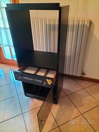 Mobile porta stereo. Misure: altezza 1,15 mt larghezza 48,5cm profondità 40cm Larghezza interna 44,5 co Altezza vano stereo 54 cm Sotto cassetto e vano porta dischi con portello.