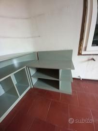 Mobile porta televisore per angolo tondo composto da due parti staccabili. Il primo= lunghezza 90 alto 83 - Il secondo= lunghezza 130 alto 83. In ottime condizioni non è di formica ma è verniciato. Prezzo trattabile dopo visione