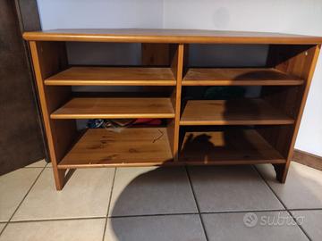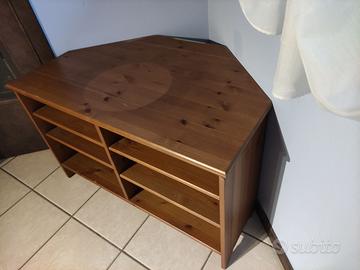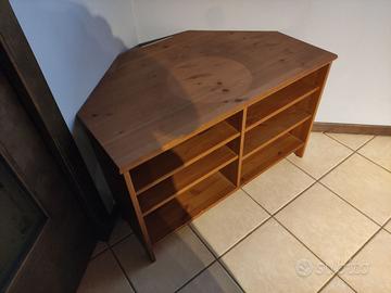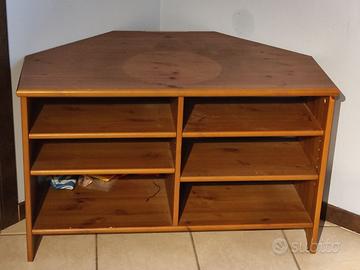 Mobile porta TV angolare, struttura in buono stato di conservazione ma, da riverniciare. Dotato di quattro ripiani regolabili in altezza, per riporre consolle/lettore dvd ecc.