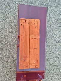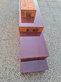 Unico nel suo genere lunghezza 150cm larghezza 50cm. Con 3 ripiani figura con vetro e moquette e alzatina porta TV. Ritiro presso il mio domicilio.