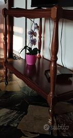 Elegante carrello a colonna vintage Carrello bar aperitivo - porta vivande - porta Tv In ottime condizioni, sia nella struttura integra e stabile, sia nelle ruotine piroettanti Realizzato in legno scuro Gambe in legno massello tornite e due ripiani Qualche segno del tempo/d'uso nella verniciatura Ideale anche come mobile salvaspazio Misure: cm 75 x 42 - altezza cm 72 🤩 PUOI TROVARE MOLTO ALTRO TRA I MIEI ANNUNCI 🤩