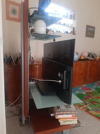 Mobile porta TV in legno, alluminio e vetro; composta da 4 ripiani movibili in altezza. Misure mobile: altezza cm 168, larghezza cm 87, profondità massima cm 55. Il mobile verrà consegnato a mano nella città di Sanremo