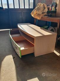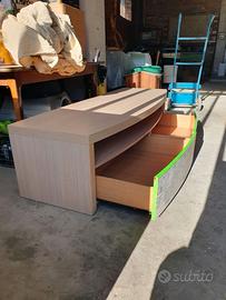 Vendo mobile porta tv in buone condizioni,molto solido e resistente,con due cassetti frontali ampi e capienti. Presenta sui due fianchi laterali dei segni poco visibili dove erano installate due torrette una per parte,per il resto impeccabile. Le misure sono 180 larghezza,63 profondità,altezza da terra 48. Ha uno spazio d appoggio tra cassetti e ripiani di un altezza di 15 cm. I due cassetti misurano 79 x 45 entrambe. Disponibile per visione di persona, ritiro a mano