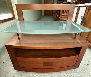 Porta TV di design, prodotto di qualità, con tre mensole per libri e suppellettili.