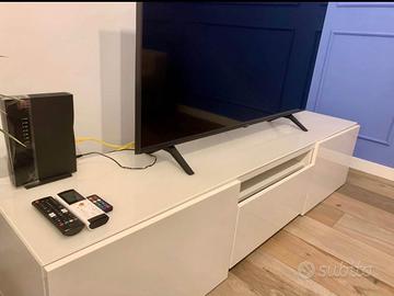 Venddsi mobile porta tv e 2 vetrinette, entrambi di colore bianco laccato e di marca IKEA. Mobile porta tv: 180 (lunghezza) x 39 (altezza) x 41 (spessore). 2 vetrinette: 60 (lunghezza) x 38 (altezza) x 23 (spessore).
