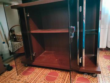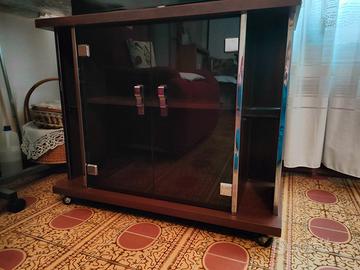 Mobile porta TV e hi fi con vetrinetta ( che preserva dalla polvere) con ruote. Largh 90x 75 h. x 41 prof