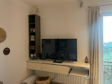 Due cassetti, spazio centrale per stereo con passaggio cavi.