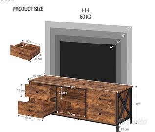 Vendo mobile porta TV Hzuaneri modello TV16801B, colore marrone vintage con struttura in ferro stile industriale.