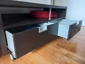 Besta Ikea con ruote tinta wengè come da foto. Misure 120x60x55. Alcuni segni di usura