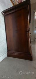 Mobile porta tv in arte povera fatto da artigiano con sportello, ripiano interno, inserto anteriore per elettrodomestici. Posteriormente fessure per passaggi cavi elettrici e dati. Dimensioni H 80, L 75, P 44