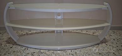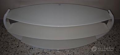 Mobile porta TV ovale come nuovo. Robusto. Struttura in acciaio e legno laccato. Ripiani in vetro. Design elegante, introvabile. Misure: 125L x 37P x 48H . Visionabile quando volete. Comprato nuovo a € 450