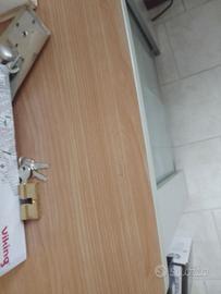 Moble porta tv, stereo in legno e due antine in vetro opaco con ripiano interno ed apertura sul retro per cavi , misure :larghezza 81 cm, profondità 51,5 cm ed altezza 78.5 cm - preferibile ritiro in sede