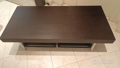 Mobile per TV, tipo di legno wengè scuro naturale, dimensioni tavola, larghezza 64 cm , lunghezza 134 cm e altezza 8 cm e altezza totale da terra 33 cm (piedini regolabili), 2 cassettoni porta audio Hi-Fi(ad esempio lettore DVD o Dolby surround), dimensioni lunghezza 42 cm, larghezza 46 cm e altezza 8 cm (spazio totale fino al legno 15 cm), sotto alla tavola c'è agganciato il porta fili . Prezzo trattabile