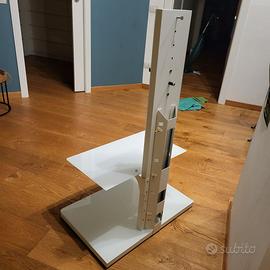 Mobile porta tv con 2 ripiani in vetro rinforzati (ripiano inferiore 70x45cm, ripiano superiore 60x35cm). H. 115cm. Il mobile può essere spostato perché ha le rotelline, regge tranquillamente anche TV a schermo piatto di dimensioni più grandi (noi avevamo montato una tv piatta da 46'').