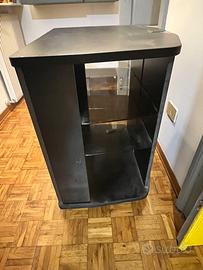 Regalo a chi se lo viene a prendere. Mobile porta TV nero con struttura in legno e ripiani in vetro fumé. Dotato di rotelle per facile spostamento e passacavi posteriore integrato. Caratteristiche: ∙Colore nero ∙3 ripiani interni in vetro fumé ∙Ruote per spostamento ∙Passacavi sul retro ∙Piano superiore ampio per TV o altri dispositivi ∙Design con angoli arrotondati ∙Dimensioni: 74 x 56 x 80 cm (L x P x H) Condizioni: Usato, presenta qualche segno d’uso sul piano superiore (visibile nelle foto), struttura solida e integra. I ripiani in vetro sono in buono stato.