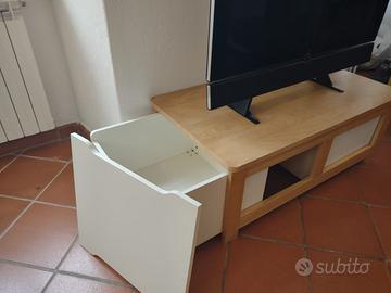 Regalo per cambio arredamento mobile porta TV molto solido (sostiene TV vecchia molto pesante) con 2 contenitori capienti. Usato ma in buone condizioni, unico difetto scheggiato su un angolo come da foto. Ritiro a carico acquirente (100 m di strada pedonale).