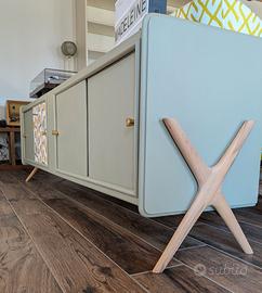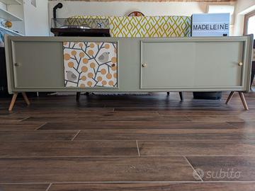 Mobile che può essere usato come sideboard, porta vinili e giradischi o mobile da ingresso. Il top e il fondo sono stati aggiunti per rafforzare il mobile. Misure: lunghezza: 176,5; profondità: 35,5; altezza: 54. Mobile unico, originale e robusto che combina vintage e moderno. Se vuoi vedere altri lavori, seguimi su Un gatto nel cassetto (IG e FB).