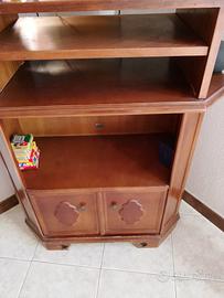 vendo mobile porta TV in legno la parte sotto si può utilizzare come buffet il buco centrale e stato fatto per collegare lo stereo alzatina inclusa.