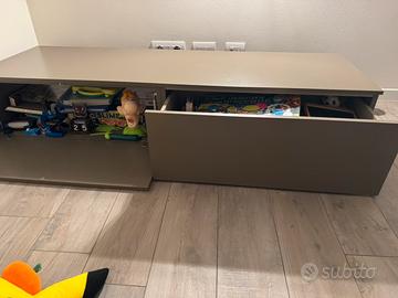 Mobile porta tv con un cassettone e un’anta a ribalta. Mobile tenuto bene, ritiro a carico del compratore Misure: 180x58 h 35